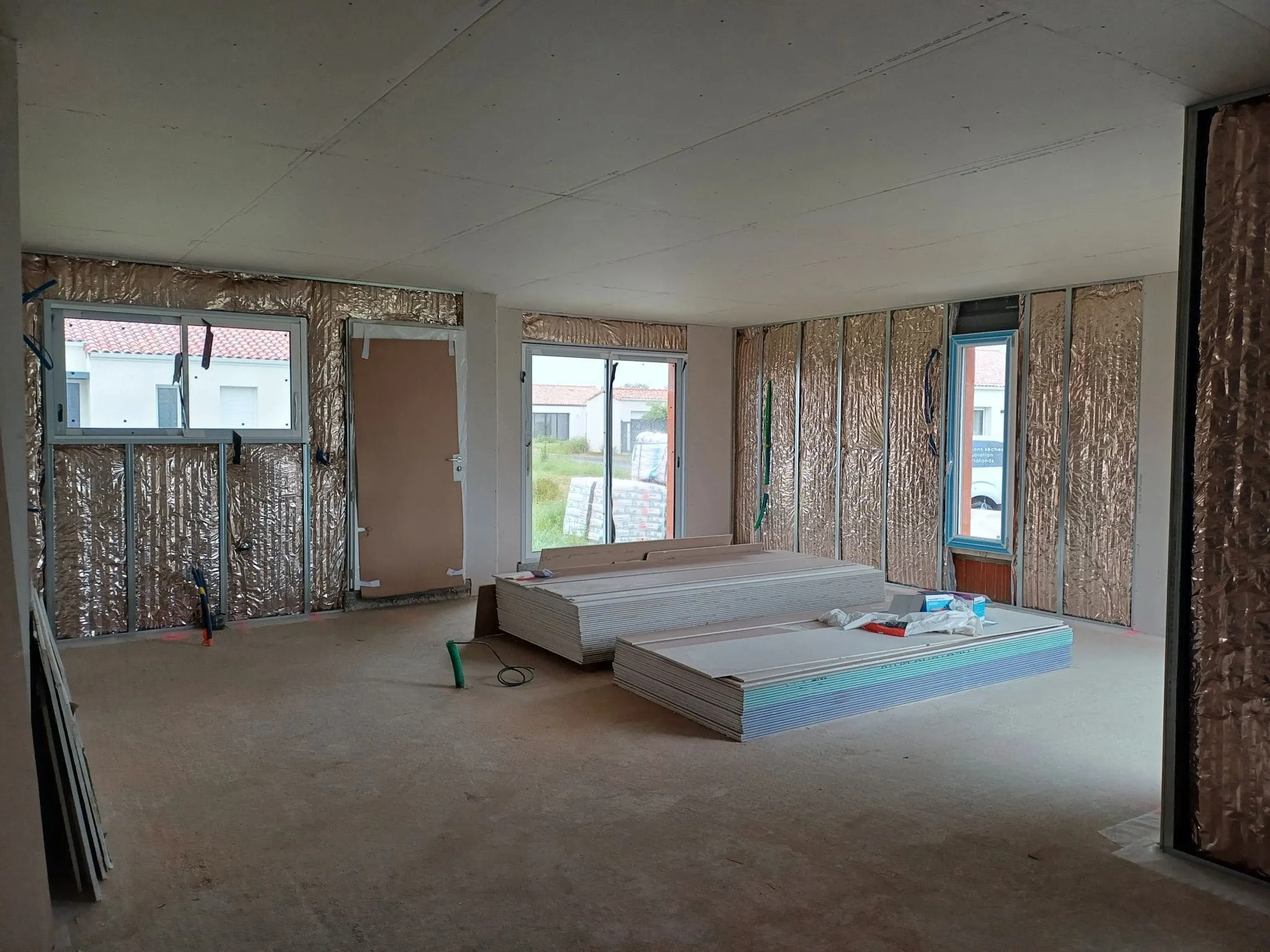Nous posons des matériaux isolants performants dans vos cloisons, plafonds droits ou rampants pour limiter les déperditions de chaleur et optimiser vos consommations d’énergie.